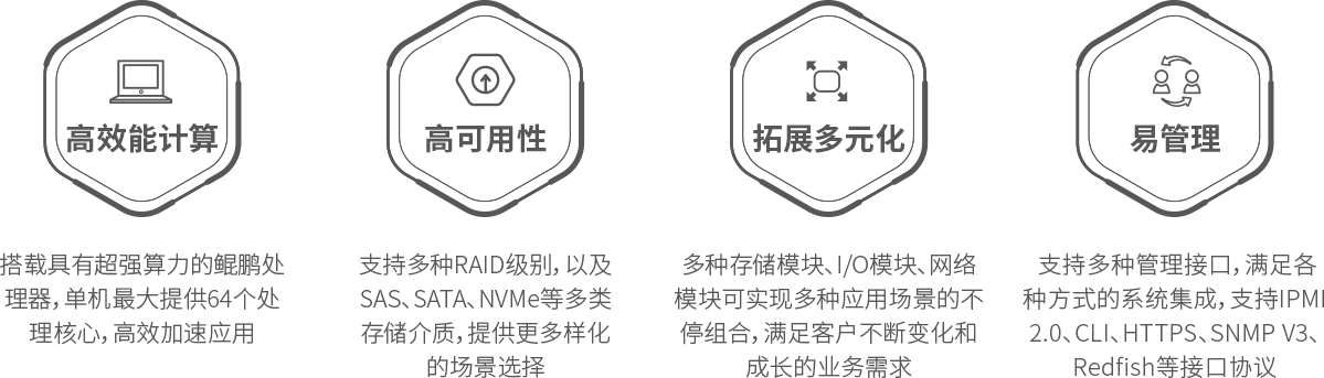 k8凯发 KunTai R721高密服务器是神州数码基于鲲鹏基础硬件推出的新一代高密度计算设备。其具备高效能计算、安全可靠与开放生态优势。